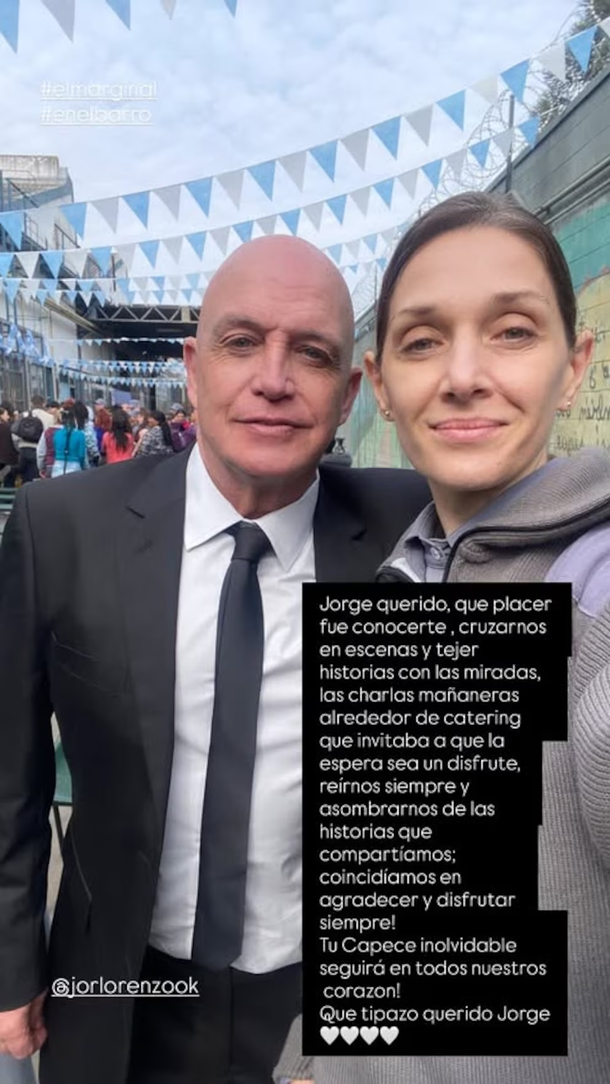 Gerardo Romano, quien compartió escena con Lorenzo tanto en El Marginal como en su spin-off, eligió una despedida simple pero contundente: “Compañero querido...”, junto a un corazón roto. Ana Garibaldi, su compañera en En el Barro, también se mostró profundamente conmovida: “Qué gran compañero fuiste. Gracias por las risas, por las escenas y por tu generosidad”.