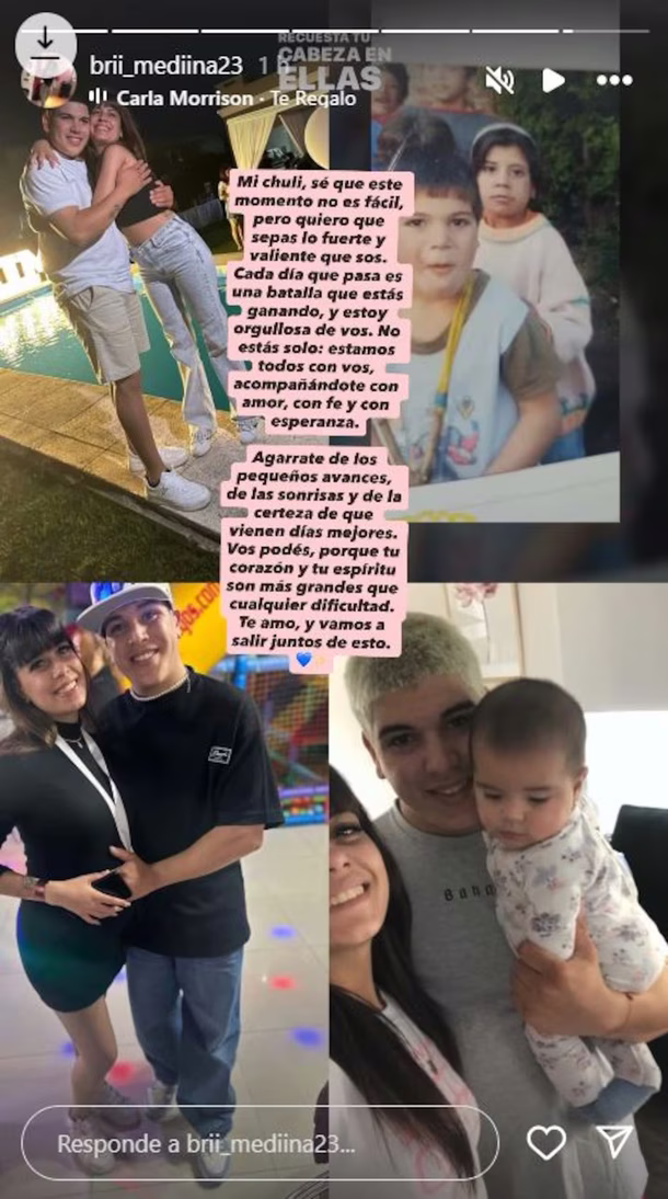 “Mi Chuli, sé que este momento no es fácil, pero quiero que sepas lo fuerte y valiente que sos. Cada día que pasa es una batalla que estás ganando y estoy orgullosa de vos. No estás solo: estamos todos con vos, acompañándote con amor, con fe y con esperanza”, escribió, acompañando la publicación con varias fotos junto a su hermano.