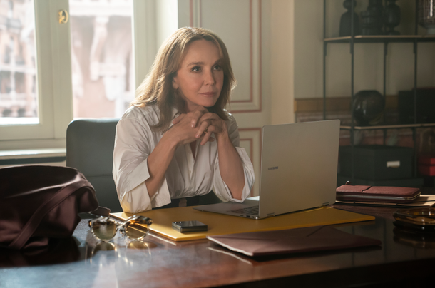 Philippine Leroy-Beaulieu: "Ella no era solo sofisticada e irónica. Era horrible con Emily. Algo que disfruté mucho hacer, lo siento. No, siempre es divertido interpretar a estos personajes. Puedes hacer todo lo que nunca podrías hacer en la vida real, así que fue genial. Gracias, Darren. De verdad. Y sí, lo que sucede aquí es que la armadura se rompe un poco y vemos el caos que hay dentro. No vemos solo vulnerabilidad; vemos un montón de preguntas que le pasan por la cabeza: sobre su vida amorosa, sobre su vida profesional. Intenta expandir esto, obviamente, con Roma. Lo siento, chicos. Porque, ya saben, ella quiere evolucionar o cambiar. O está buscando algo. Es interesante cómo intenta muchas cosas y fracasa en todas partes, lo cual es fantástico. Me encantan los personajes que fracasan. Es muy agradable interpretar eso. Y sí, está un poco perdida en esta temporada, cosa que me encanta porque también es muy cómico. Así que, sí, es una visión diferente de Sylvie".