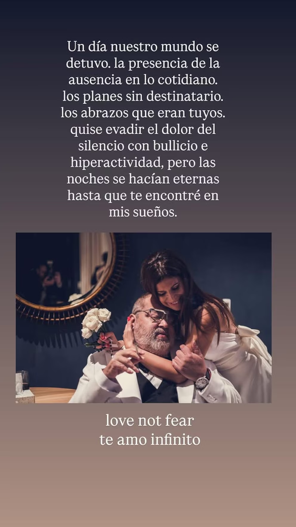 La abogada recurrió a sus redes sociales para compartir un mensaje cargado de emoción, acompañado por una imagen significativa: una fotografía de su casamiento con Lanata, celebrado en abril de 2022. Aquella postal, asociada a uno de los momentos más felices de la pareja, funcionó como punto de partida para un texto atravesado por la nostalgia, la ausencia y la persistencia del amor.
