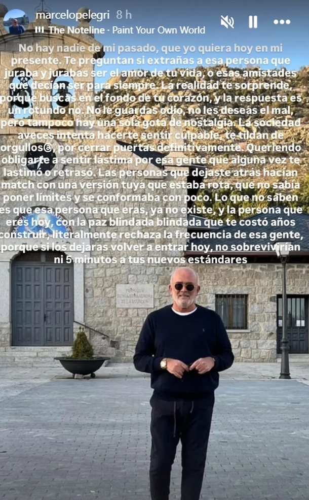 Ante el revuelo mediático generado por el reality de Telefe, Pelegri decidió no quedarse callado. A través de sus historias de Instagram, lanzó un mensaje directo y contundente que no tardó en volverse viral: "No hay nadie de mi pasado, que yo quiera hoy en mi presente. Te preguntan si extrañas a esa persona que juraba y jurabas ser el amor de tu vida, o esas amistades que decían ser para siempre", inició el explosivo escrito en Instagram.