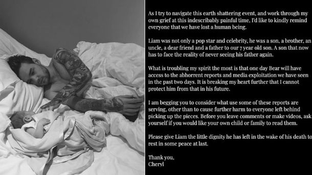 "Liam no solo era una estrella del pop y una celebridad, era un hijo, un hermano, un tío, un querido amigo y un padre de nuestro hijo de 7 años. Un hijo que ahora tiene que enfrentarse a la realidad de no volver a ver a su padre", agregó.