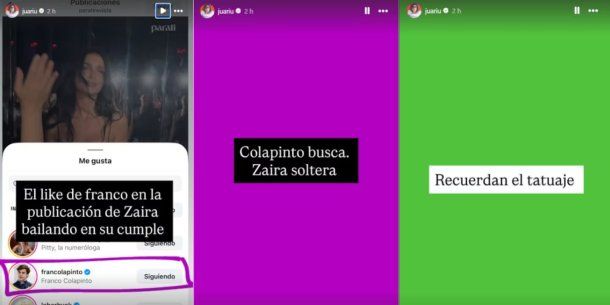 Juariu, reconocida influencer, logró detectar esto y rápidamente lo subió a su cuenta de Instagram, donde sus seguidores también replicaron la imagen y se volvió viral en cuestión de minutos. “El like de Franco en la publicación de Zaira bailando en su cumple”, escribió Juariu, adjuntando la captura que mostraba lo que ella estaba relatando.