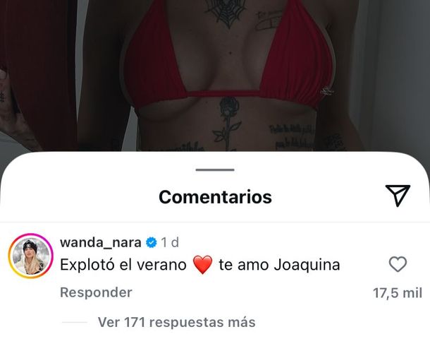 Por supuesto, la conductora respondió al gesto de la cantante con un mensaje que ratificó la buena relación que mantienen ambas: "Explotó el verano. Te amo Joaquina".