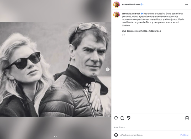 “Hoy quiero despedir a Darío con mi más profundo dolor, agradeciéndole enormemente todos los momentos compartidos tan maravillosos y felices juntos”, escribió Esmeralda Mitre en su cuenta de Instagram.