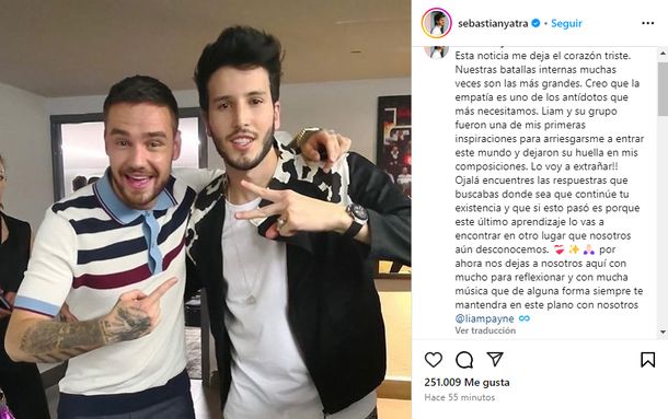 El mensaje de Sebastián Yatra por la muerte de Liam Payne: "Batallas internas"