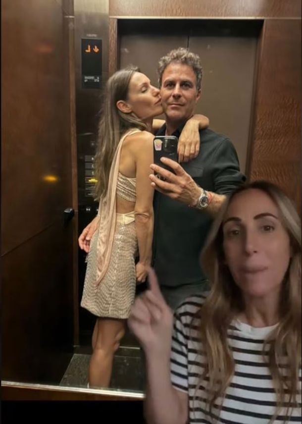 Se filtró una imagen que demuestra que el polista la acompañó al nuevo destino. En ésta se los ve en un ascensor muy acaramelados y ella le está dando un beso en el cachete.