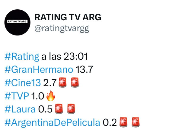 Por eso, el reality de Telefe arrancó el domingo arriba a los 12 puntos y mantuvo ese piso durante un largo rato, hasta que después de las 23 llegó a su pico de la jornada, con 13,7.