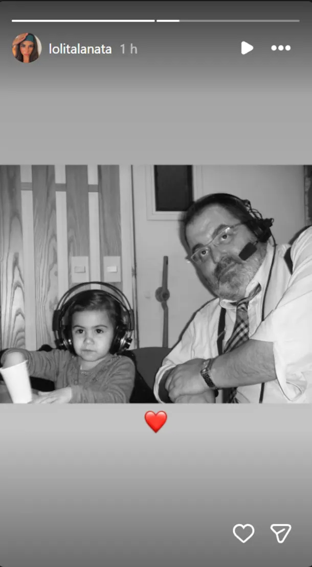 Con imágenes y frases breves, ambas reflejaron la huella imborrable que el periodista dejó en sus vidas y cómo el recuerdo sigue presente aun cuando el calendario avanza. Lola, la menor, optó por un gesto simple pero contundente: compartió una foto en blanco y negro de su infancia junto a Jorge en un estudio de radio, los dos con auriculares, acompañada únicamente por un corazón rojo, símbolo del vínculo y la cercanía que los unía.