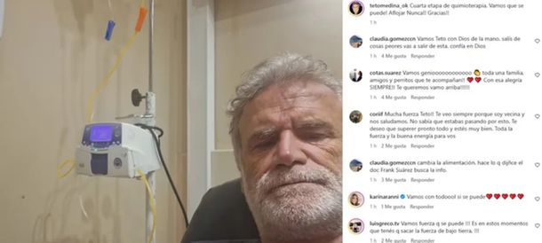 En ese contexto, en las últimas horas volvió a comunicarse con sus seguidores al publicar una foto desde una camilla del sanatorio Trinidad, en Palermo. Junto a la imagen, dejó un mensaje cargado de fuerza y optimismo: “Cuarta etapa de quimioterapia. ¡Vamos que se puede! Aflojar, nunca. Gracias”.
