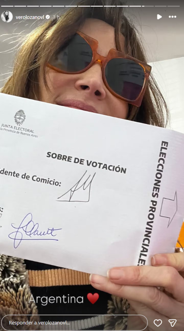 Verónica Lozano también se sumó a la ola de publicaciones desde el centro de votación. “Argentina”, escribió junto a un emoji de corazón rojo, en una imagen que compartió luego de haber votado.