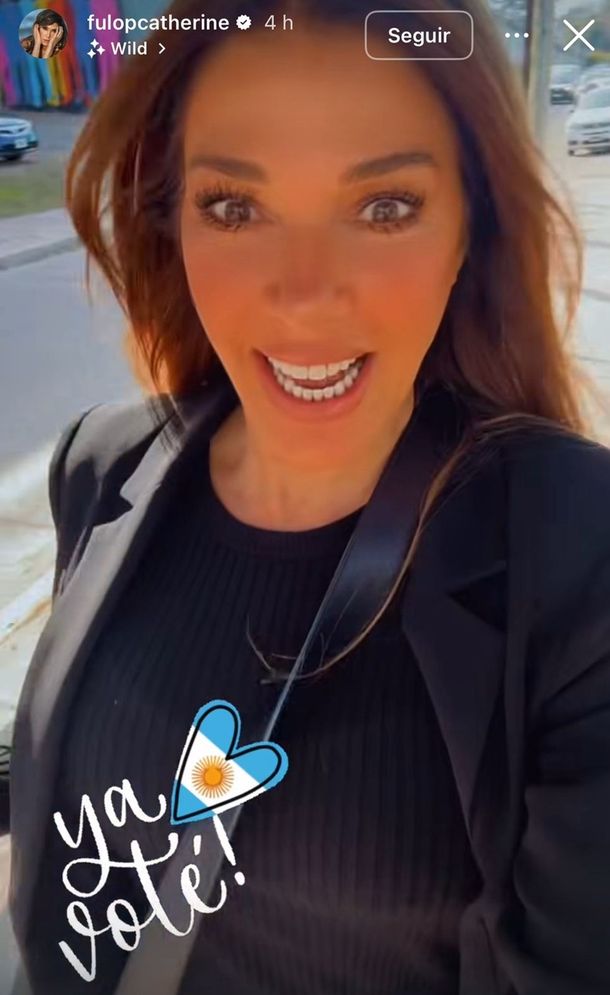 Catherine Fulop fue una de las primeras en manifestarse en sus redes. “Buen día, mi gente bella. Bueno, acá, mi amor. Deber cumplido”, expresó en sus historias de Instagram, mientras mostraba el troquel que recibió tras votar.