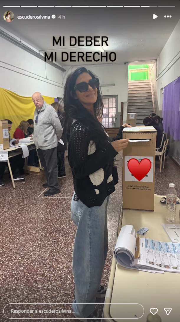 Silvina Escudero también mostró en redes el momento de su participación en los comicios. En sintonía con su hermana, publicó una foto desde el cuarto oscuro y escribió: “Mi deber mi derecho”.