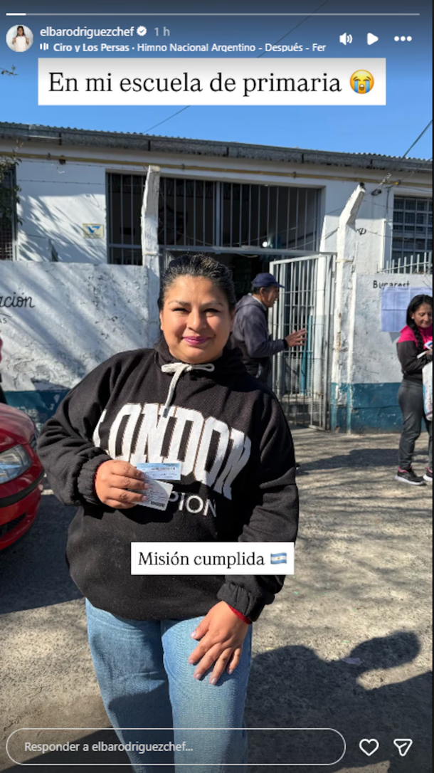 Elba Rodríguez, reconocida por haber ganado MasterChef en 2014, también compartió su experiencia en las urnas. “Misión cumplida”, escribió junto a una imagen del frente de la escuela donde votó.