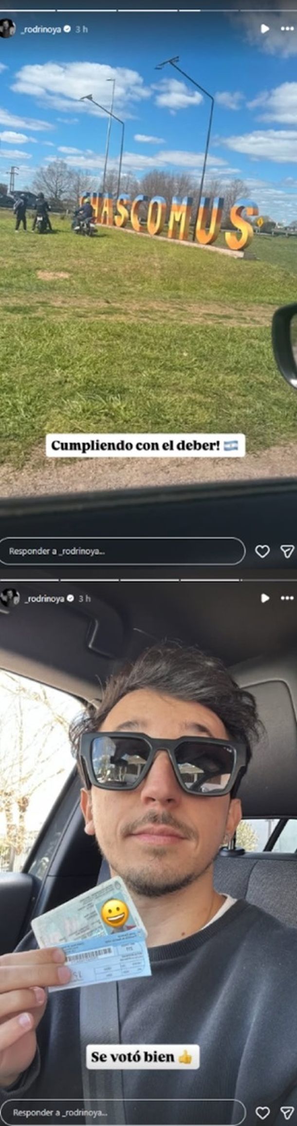 Rodrigo Noya, por último, documentó su viaje a Chascomús para cumplir con el deber ciudadano. Tras votar, compartió una selfie desde su auto mostrando el DNI y el troquel, junto a una serie de imágenes del día.