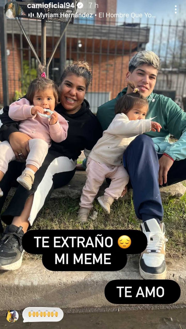 En las últimas horas, Camilota compartió una fotografía que emocionó a miles: se la ve junto a Thiago y a sus hijas, Laia y Aimé, en una imagen cargada de ternura. “Te extraño mi meme, te amo”, escribió al pie del posteo, que rápidamente se transformó en un símbolo de esperanza en medio de tanta incertidumbre.