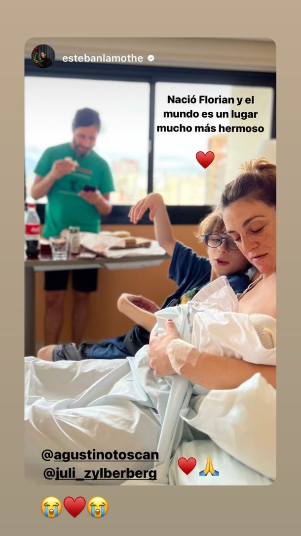 "Llegando a conocer a Florián", escribió Esteban Lamothe en una de sus Historias de Instagram. Allí, se veía al actor junto a su hijo en el ascensor del sanatorio.