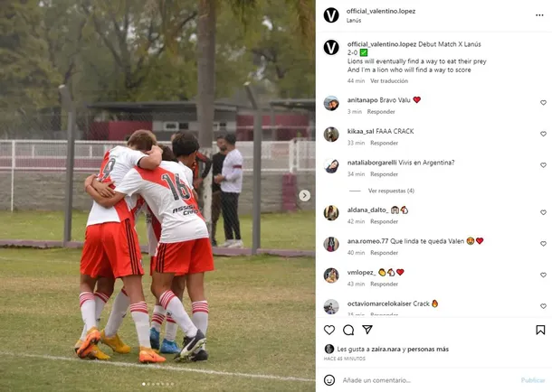 Después del partido antes Lanús, el hijo de Wanda Nara y Maxi López compartió una seguidilla de fotos del partido en su perfil de Instagram. “Debut match Lanús 2-0″, escribió Valentino.