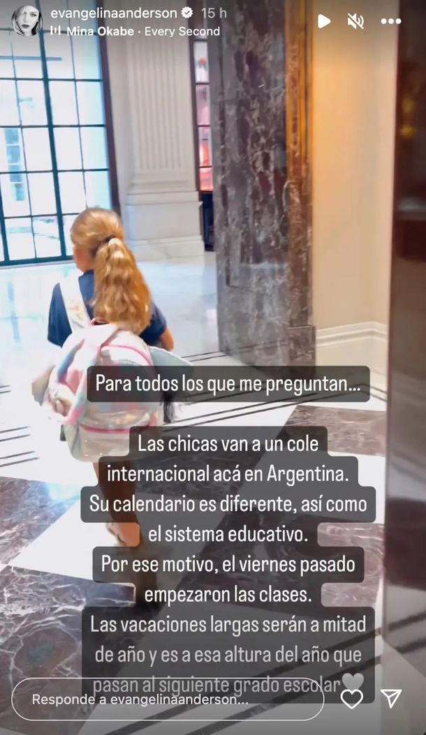 La familia Demichelis optó por esta institución, la Asociación Escuelas Lincoln, no solo por su enfoque educativo bicultural sino también por las facilidades y comodidades de alto nivel que ofrece, como una piscina y canchas deportivas. La información sobre la situación escolar de las hijas de Anderson surgió a partir de una publicación en el perfil oficial de Instagram de la modelo, donde reveló detalles sobre el sistema de calendario y educativo al que sus hijas están acostumbrándose desde su llegada a la Argentina hace más de un año.