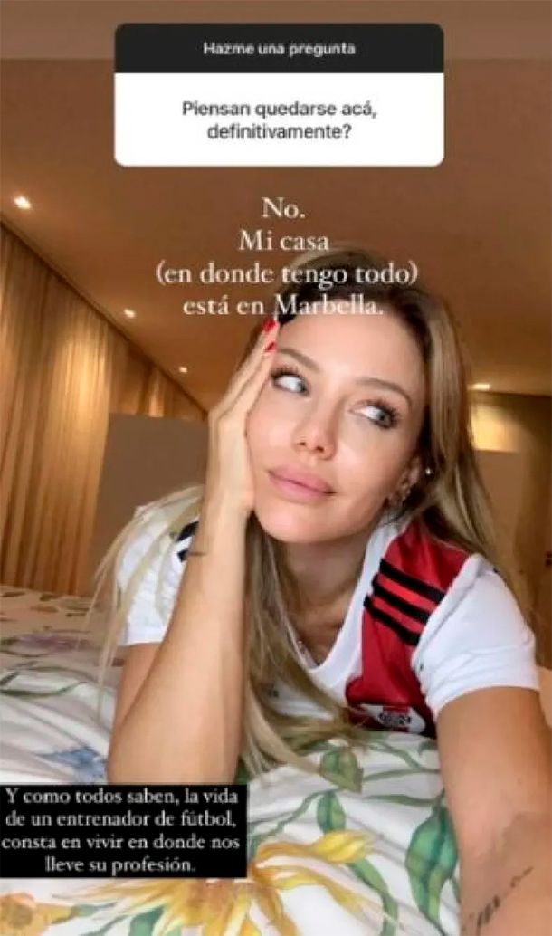 “¿Piensan quedarse acá definitivamente?”, fue la consulta de una usuaria. Sincera, la rubia respondió: “No, mi casa (donde tengo todo) está en Marbella”.