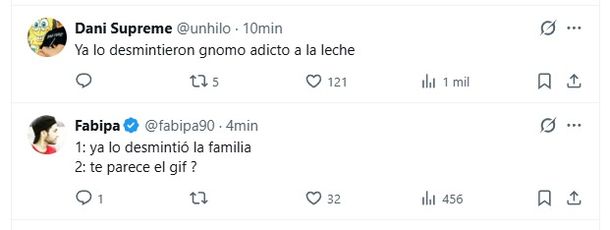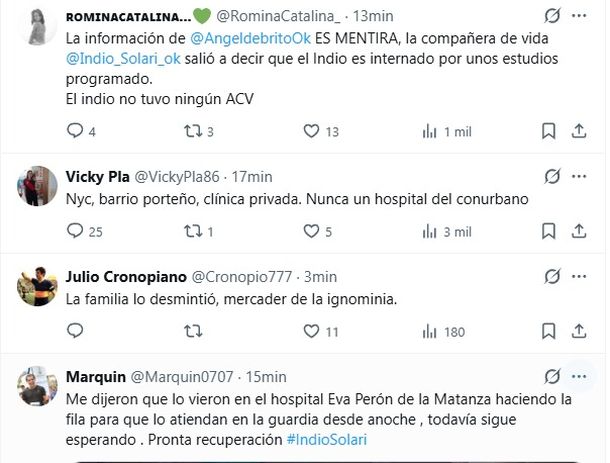 Entre los comentarios más destacados, los fans subrayaron la irresponsabilidad de publicar datos sensibles sin confirmación previa. "La información de Ángel de Brito es mentira, la compañera de vida del Indio salió a decir que está internado por unos estudios programados", señaló un seguidor, mientras otros apelaron a calificativos más duros: "La familia lo desmintió, mercader de la ignominia".