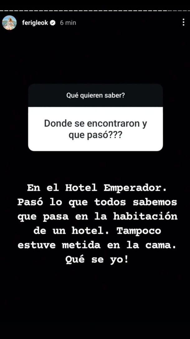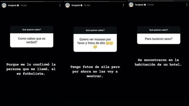 Iglesias también interactuó con sus seguidores, quienes le hicieron preguntas sobre la veracidad de la información. Uno de ellos le consultó: "¿Cómo sabés que es verdad?", a lo que ella respondió con firmeza: "Porque me lo confirmó la persona que me llamó, el exfutbolista".
