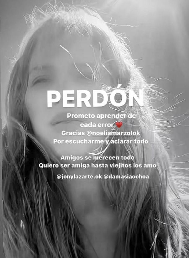 Aclaró -además- que ya le pidió perdón a la bailarina: "Ella fue hermosa, me escuchó y hasta me aconsejó. Mi mayor error es mezclar el pasado con el presente. A veces pienso que ya me curé de cosas viejas y la vida me demuestra que no. Prometo aprender. Les pido perdón a todos".