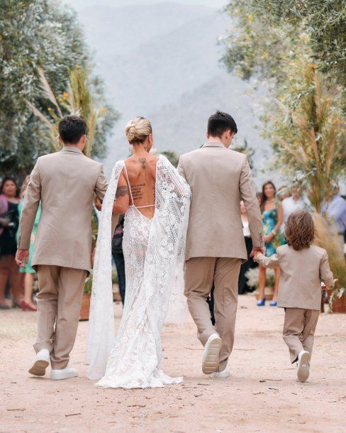 Algunos de los detalles que más emocionaron de la jornada se vincularon con el modo en que accedió Flor a la boda, dado que optó por llegar arriba de un auto clásico como un Mustang, que condujo el ambientador Ramiro Arzuaga, acompañada por sus tres hijos.