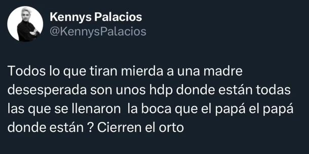 “ Todos lo que tiran mierda a una madre desesperada son unos hdp donde están todas las que se llenaron la boca, que el papá, el papá donde están ? Cierren el orto”, escribió el estilista en su cuenta de X, tras el violento episodio de Mauro Icardi con sus hijas y Wanda Nara.