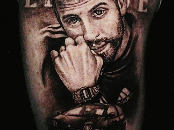 Insólito: un fanático se tatuó a Gerard Piqué con un Casio y un Twingo