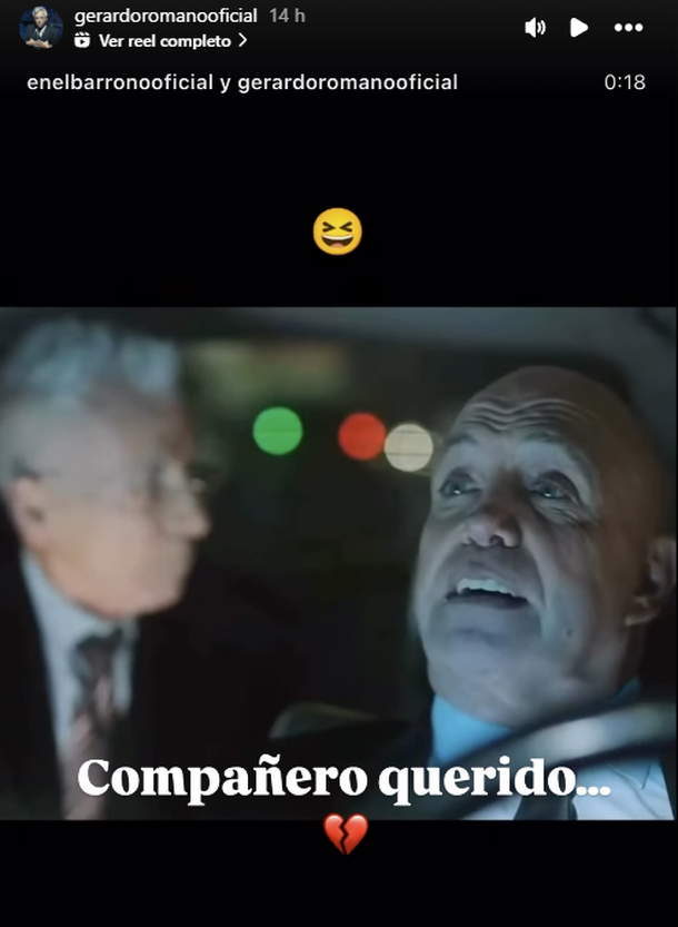Romano utilizó sus redes sociales para compartir un fragmento de una escena juntos. En sus historias de Instagram escribió “Compañero querido” junto al video y el emoji de un corazón roto.