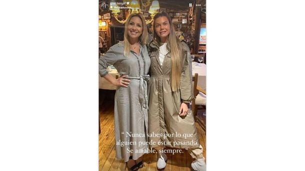 "Nunca sabés por lo que alguien puede estar pasando. Sé amable, siempre", escribió Berger, madre de la hija más chica de Daniel Scioli, a través de una historia de Instagram, junto a una foto al lado de Fabiola Yañez.
