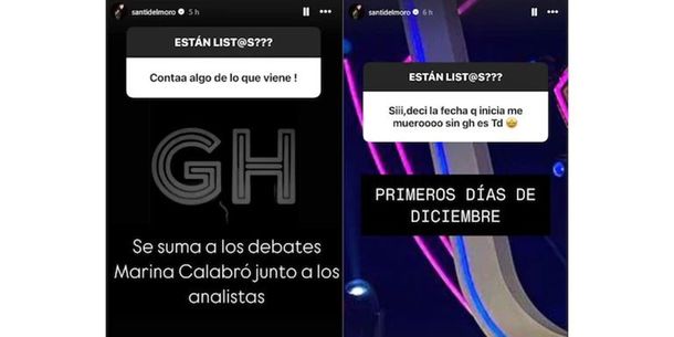 El conductor del reality compartió una primicia con sus miles de seguidores en Instagram. A través de unas historias, Santiago del Moro adelantó que “se suma a los debates Marina Calabró junto a los analistas. Bienvenida”, compartiendo el nombre de la periodista que se incorporará al panel del certamen.