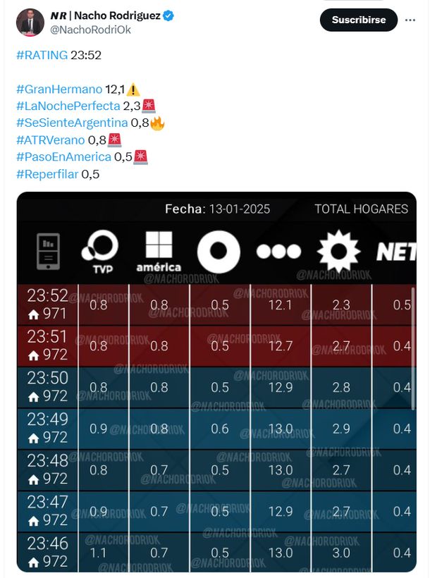 Cuando Santiago del Moro anunció que Jenifer era la elegida de la gente para volver a la casa, GH trepó a 13,7 puntos. Además, una vez que se abrieron las puertas, lo primero que hizo la jugadora fue volver a abrazarse con Giuliano bajo la incómoda mirada de Chiara, dejando así un total de 14.6 puntos para el final de GH.
