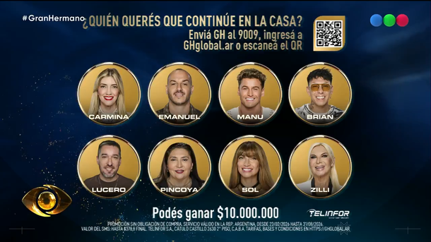 En esta oportunidad, la consigna de la producción es muy clara: ¿Quién querés que continúe en la casa? Esto significa que, a diferencia de otras galas de eliminación, el voto es netamente positivo. Los televidentes deberán elegir a su participante favorito para apoyarlo entre los siguientes jugadores: