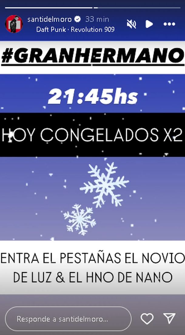 La casa de Gran Hermano no para de sorprender, y esta noche promete ser uno de los momentos más emotivos de la actual temporada. Santiago Del Moro, conductor del reality de mayor audiencia en Argentina, anunció a través de sus redes sociales quienes ingresarán al segmento conocido como "Congelados".