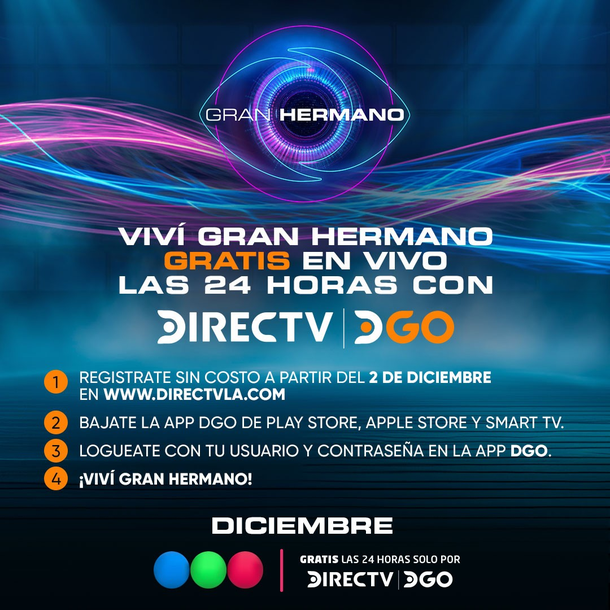 Se podrá ver todo lo que ocurra en la casa, en vivo, las 24 horas del día, con una cobertura exclusiva a través de DGO, la plataforma de TV en vivo y streaming de DIRECTV que abrirá para todo público un canal exclusivo y gratuito.