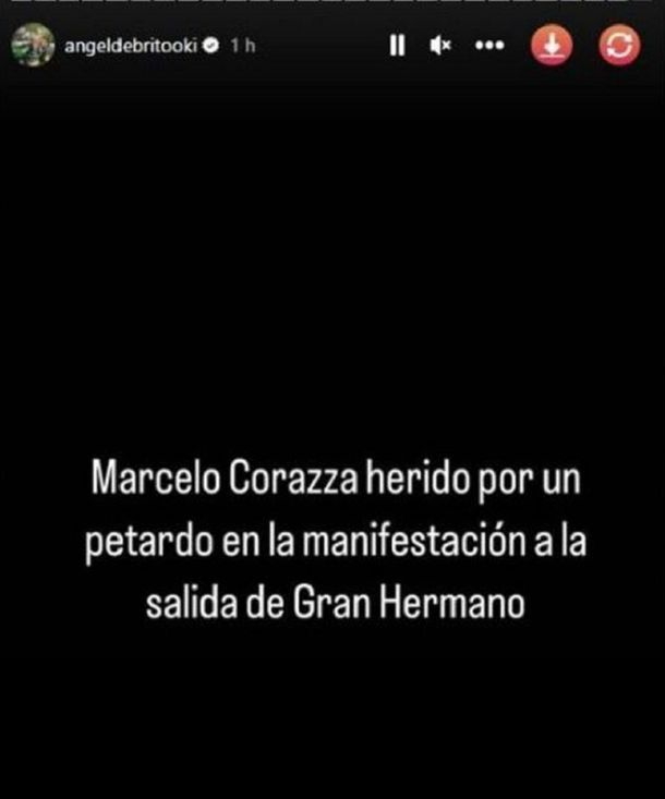 El que dio a conocer la noticia fue el periodista Ángel de Brito a través de su cuenta de Twitter: "Marcelo Corazza herido por un petardo en la manifestación a la salida de Gran Hermano".