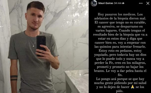 "Hoy pasaron los médicos. Los adelantos de la biopsia dieron mal. El cáncer que tengo no es curable, es agresivo, se desparramó por varios lugares", publicó Mauricio Guirao, a través de un comunicado en su cuenta de Instagram.