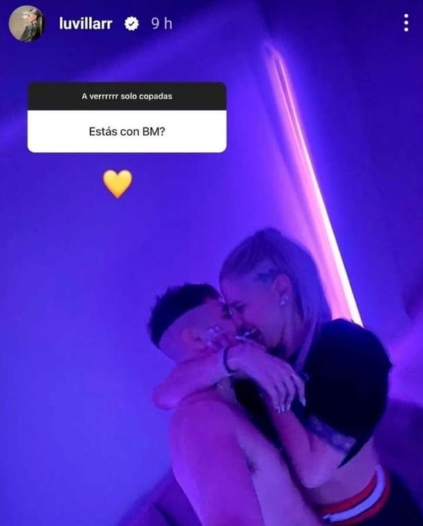 La conductora del streaming habilito la cajita de preguntas y respuestas en sus redes sociales y, como era de esperarse, le preguntaron por su presente amoroso: "¿Estás con BM?", tras lo cual ella respondió con una foto con BM dándose un beso y un corazón amarillo.