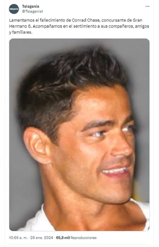 La dolorosa noticia fue confirmada el viernes pasado, a través de un comunicado que emitió su agencia de representación Telegenia: "Lamentamos el fallecimiento de Conrad Chase, concursante de Gran Hermano 6. Acompañamos en el sentimiento a sus compañeros, amigos y familiares".