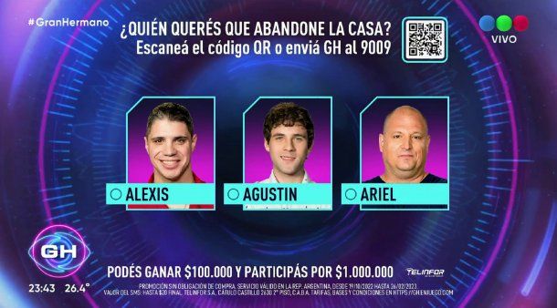 Pasó una nueva gala de nominación en Gran Hermano: Ariel, Alexis y Agustín son los candidatos a abandonar la casa la próxima semana.