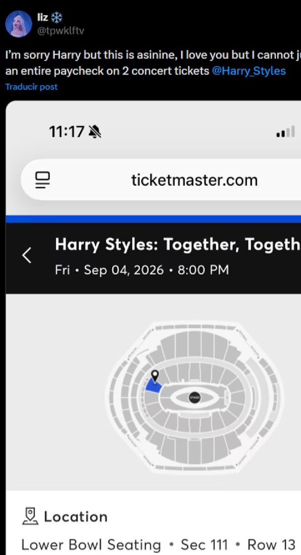 Entre las reacciones que circularon en redes se destacaron frases como: “Esto debería ser ilegal a menos que Harry esté haciendo un maldito espectáculo al estilo Cirque du Soleil en ese escenario", “Se cancela la ida al Together Together de Harry Styles, no está barato barato”, “Luego de ver los precios de Harry... BTS te amo”, “Yo diciendo que necesito ahorrar y compré boletos para Harry Styles, verdaderamente soy mi peor enemiga”, ”Así que los precios casi se han triplicado desde hslot 2022 y 2023. Capitalismo, codicia, inflación, costes de producción… ¿cuál es la razón esta vez?“, entre otros.