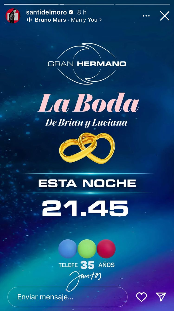 "Esta noche, 21:45. La boda de Brian y Luciana", compartió Santiago del Moro en sus redes sociales, con total expectativa por lo que se vivirá esta noche en el reality show de Telefe. La emisión de este jueves promete emoción, lágrimas y mucho amor en el aire.