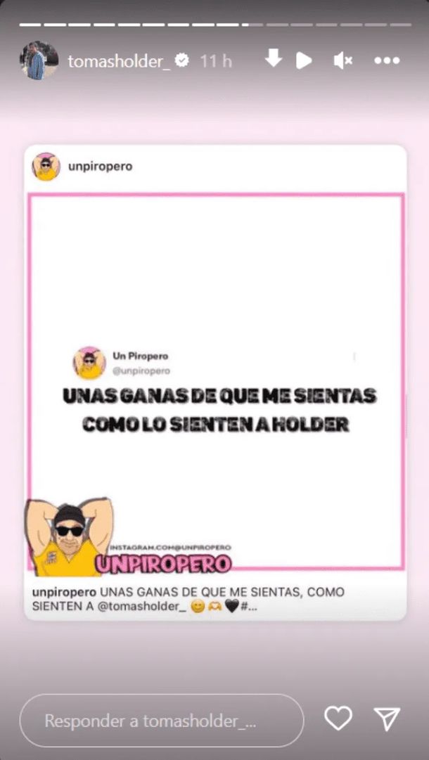 "Unas ganas de que me sientas como lo sienten a Holder", fue la imagen que replicó el influencer rosarino en historias de Instagram, en alusión a una de las frases más repercutidas del film casero que trascendió y en dónde pusieron el foco los internautas para los memes que hicieron.