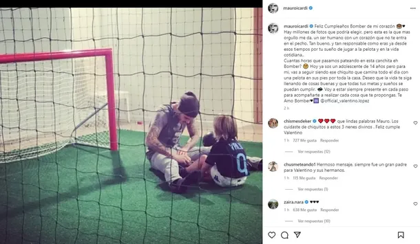 Mientras continúan las idas y vueltas respecto de cómo continuará la relación entre Wanda Nara y Mauro Icardi, el fubolista le dedicó un dulce posteo a Valentino López por su cumpleaños número 14. No pudo saludarlo personalmente porque se encuentran a varios kilómetros de distancia, pero su amor sigue intacto. A pesar de estar separado de Wanda Nara, siente que lo ama como el día que lo conoció y se lo hizo saber con palabras de mucho cariño y una promesa eterna.