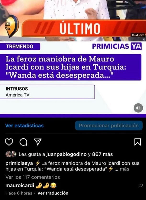 “Quiere que ellas vivan con él en Turquía y que Wanda elija dónde quiere vivir, si en Argentina o viaja a dónde Mauro esté. Lo que se dice es que le está dando dónde más le duele a Wanda para poder manejarla”, dijo el periodista.