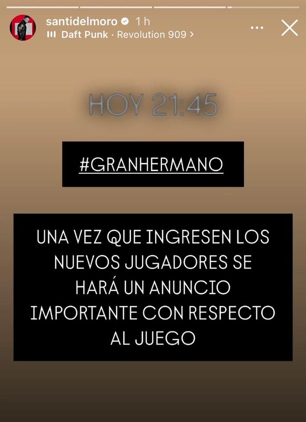 En su cuenta de Instagram, Del Moro escribió: "Una vez que ingresen los nuevos jugadores se hará un anuncio importante con respecto al juego".