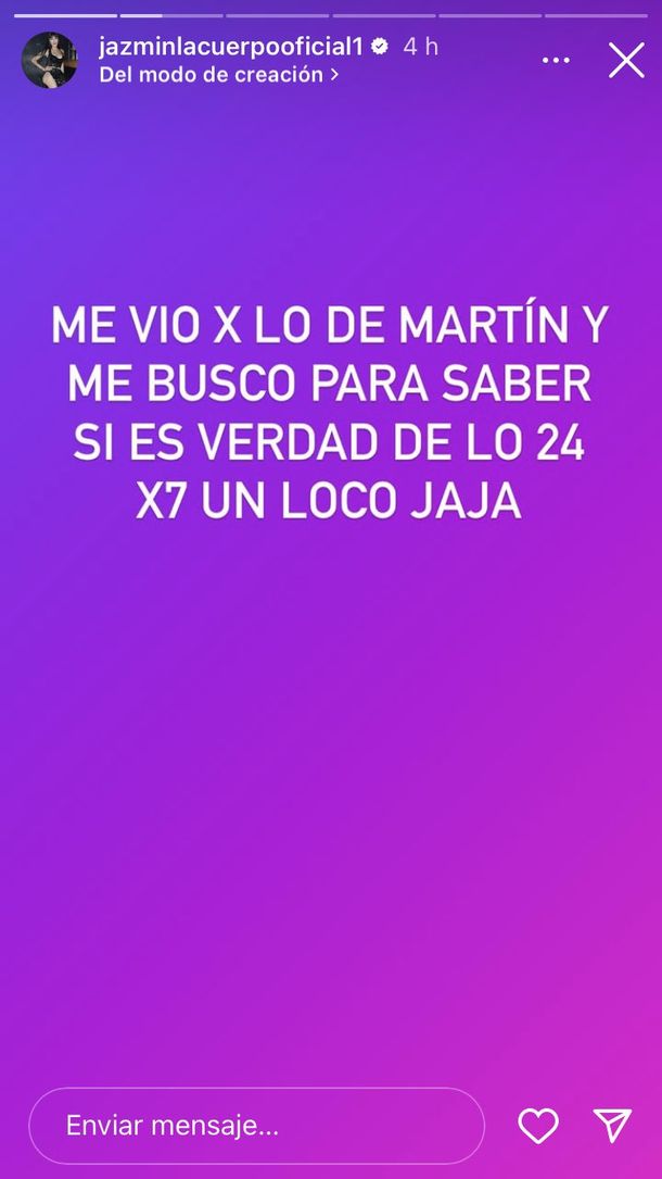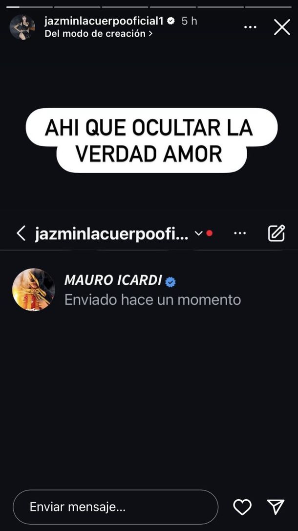 La mediática Jazmín La Cuerpo compartió mensajes del delantero hacia ella. A través de sus redes sociales, la influencer publicó capturas de pantalla que —según afirma— muestran un intercambio privado con el delantero argentino.