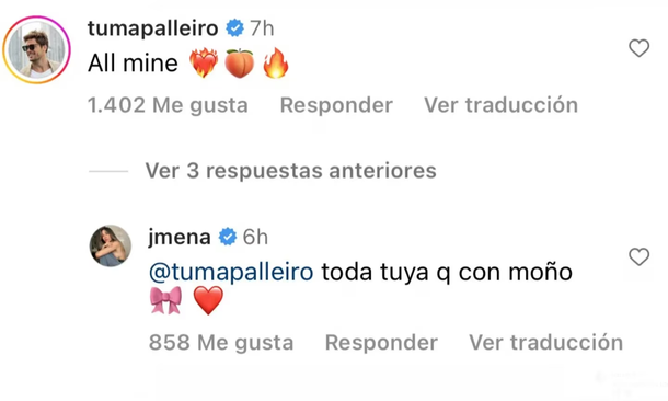 En su mensaje, Jimena escribió: "Todo mío", seguido de emojis de duraznos y otros símbolos, sugiriendo afecto por la cola de su novia. Continuó diciendo: "Soy toda tuya, con moño".